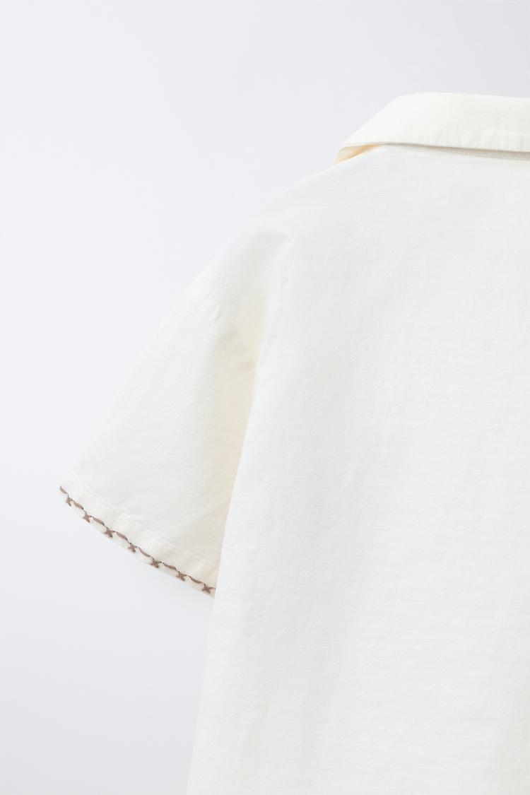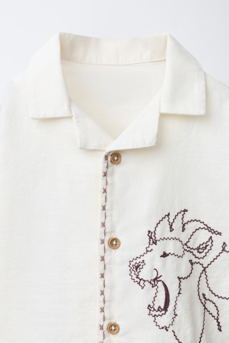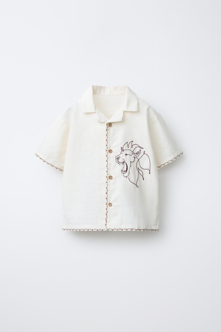 ZARA РУБАШКА С ВЫШИТЫМ ЛЬВОМ, ЭКРЮ