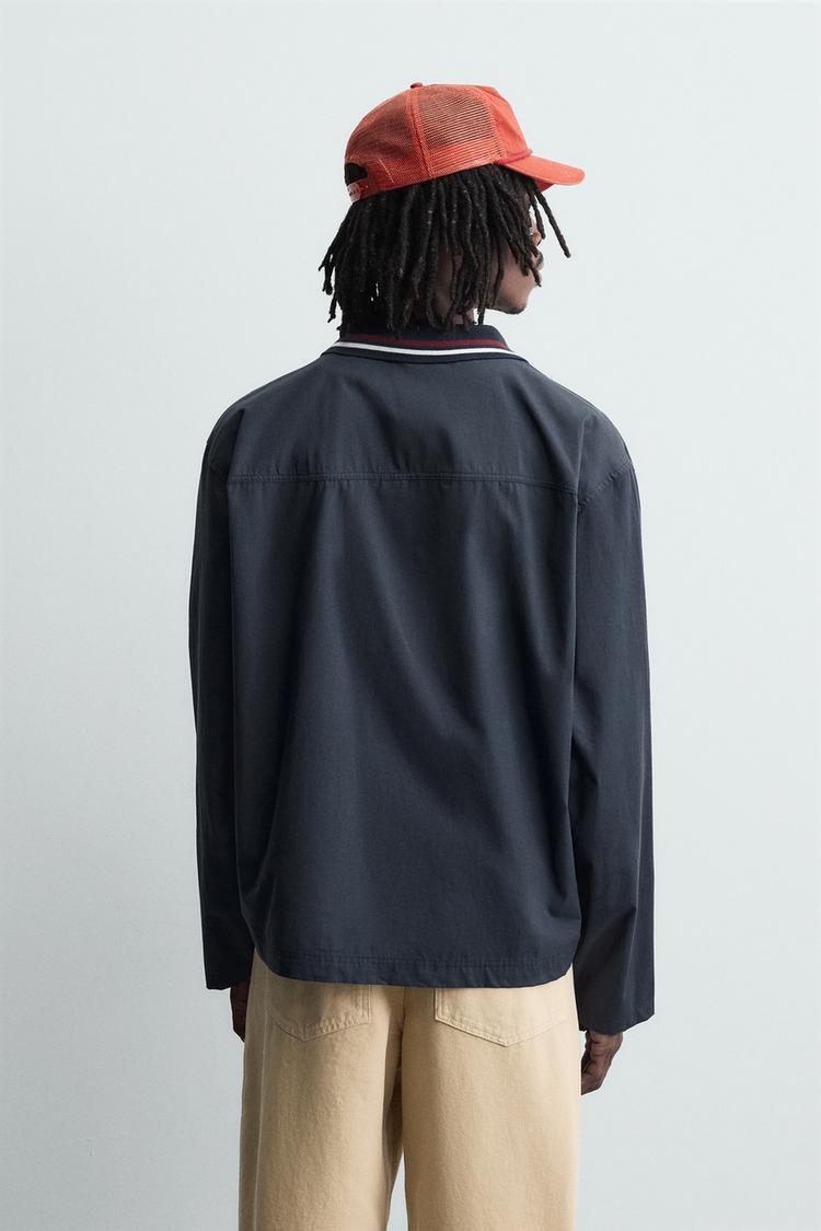 ZARА РУБАШКА С ВЫШИТЫМ ВОРОТНИКОМ В РУБЧИК, МОРСКОЙ СИНИЙ