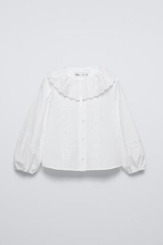 ZARA РУБАШКА С ВЫШИВКОЙ, БЕЛЫЙ
