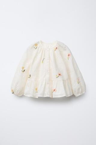 ZARA РУБАШКА С ВЫШИВКОЙ, БЕЛЫЙ