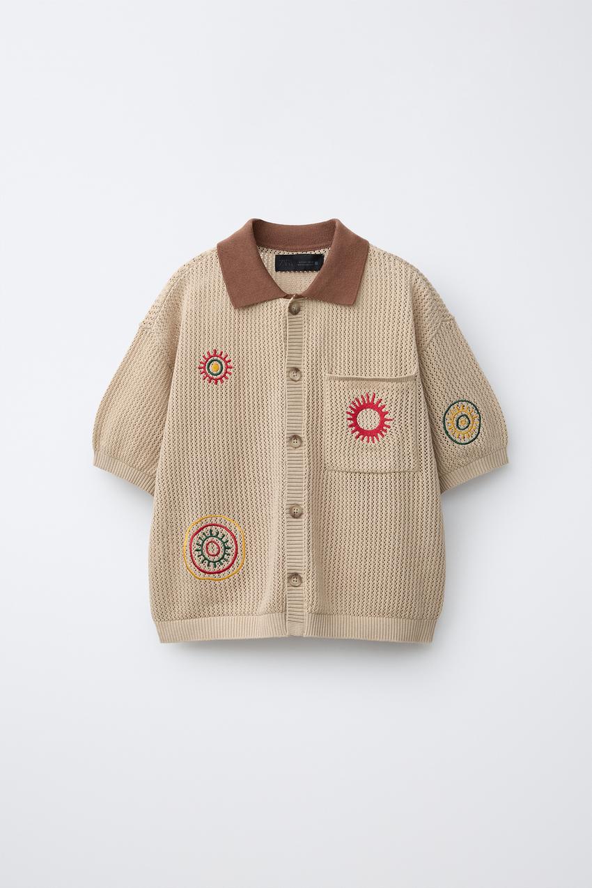 ZARA РУБАШКА С ВЫШИВКОЙ, БЕЖЕВЫЙ
