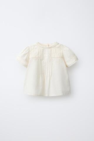 ZARA РУБАШКА С ВЫШИВКОЙ, ЭКРЮ