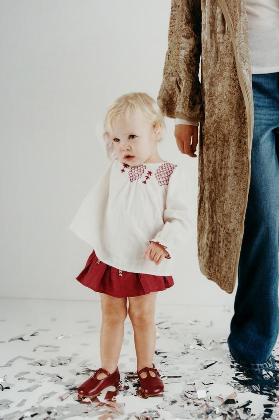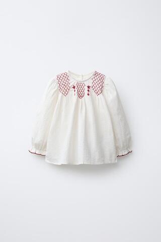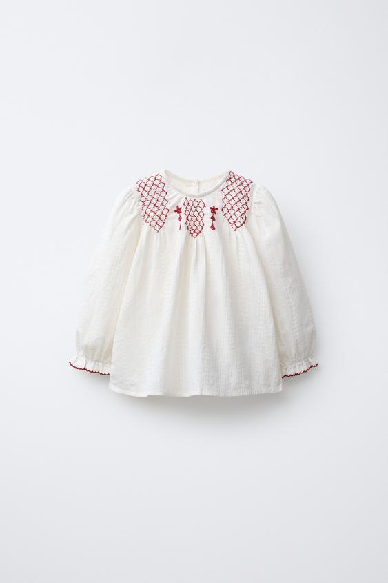 ZARA РУБАШКА С ВЫШИВКОЙ, ЭКРЮ/КРАСНЫЙ