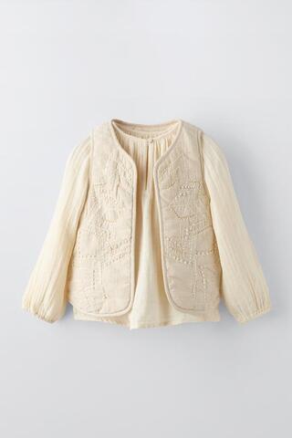 ZARA РУБАШКА С ВЫШИВКОЙ, ПЕСОЧНЫЙ