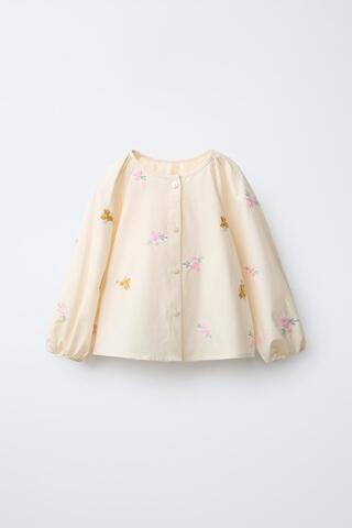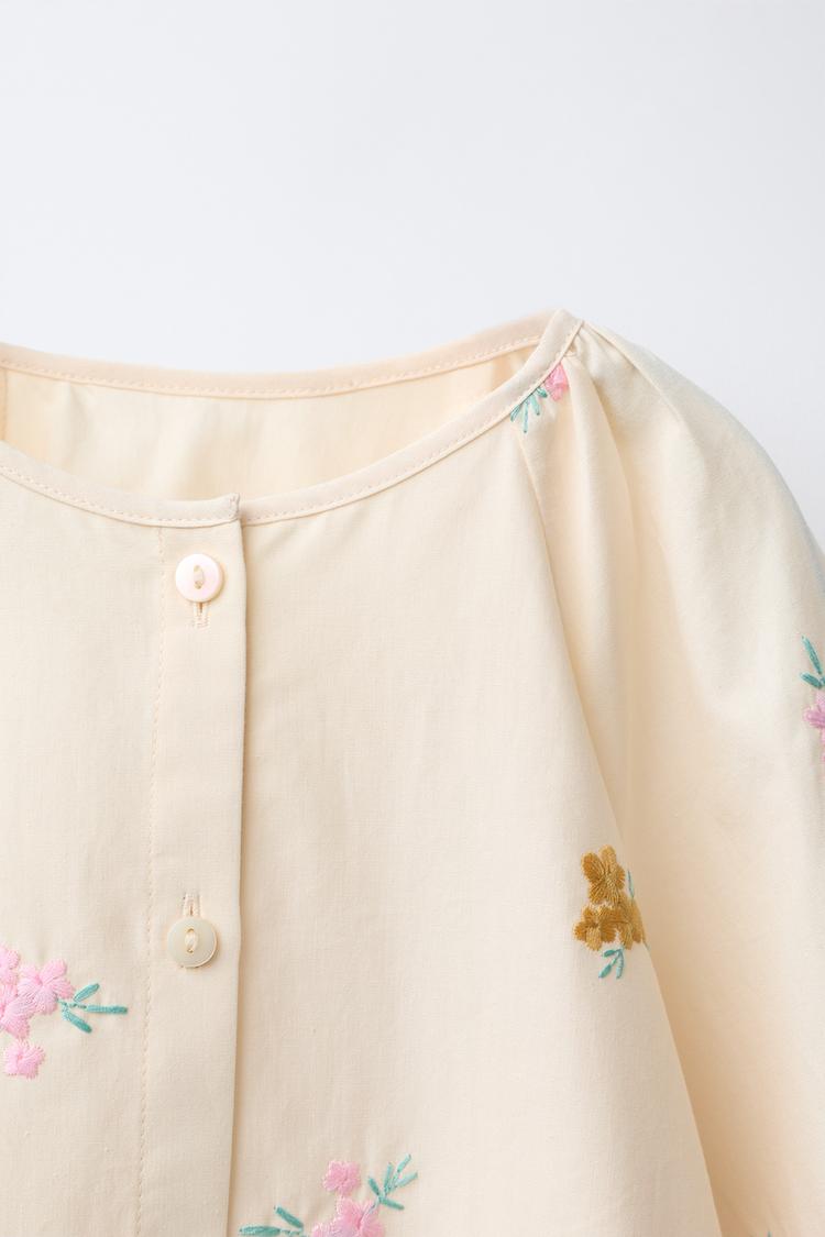 ZARA РУБАШКА С ВЫШИВКОЙ «ЦВЕТЫ», ЭКРЮ