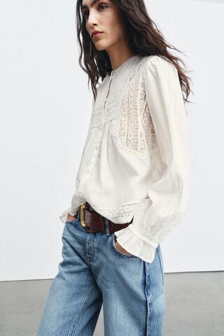 ZARA РУБАШКА С ВЫШИВКОЙ — ZW COLLECTION, ЭКРЮ