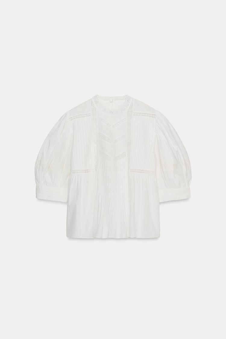 ZARA РУБАШКА С ВЫШИВКОЙ — ZW COLLECTION, ЭКРЮ