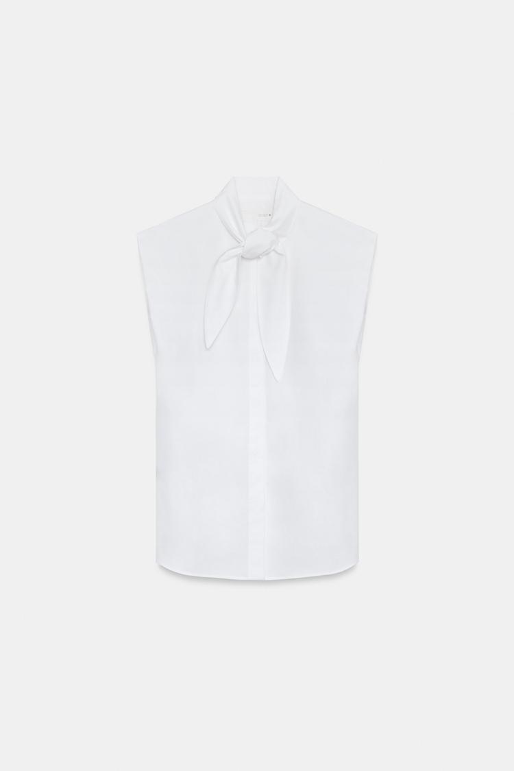 ZARA РУБАШКА С ЗАВЯЗКАМИ — ZW COLLECTION, БЕЛЫЙ