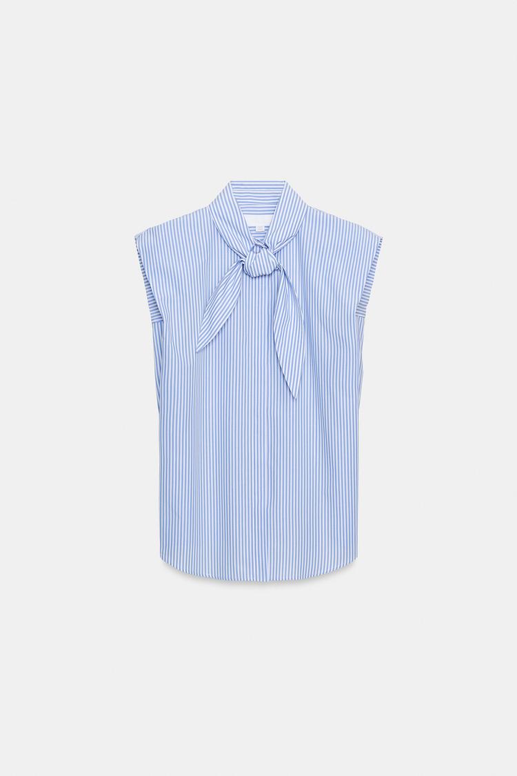 ZARA РУБАШКА С ЗАВЯЗКАМИ — ZW COLLECTION, СИНИЙ/БЕЛЫЙ