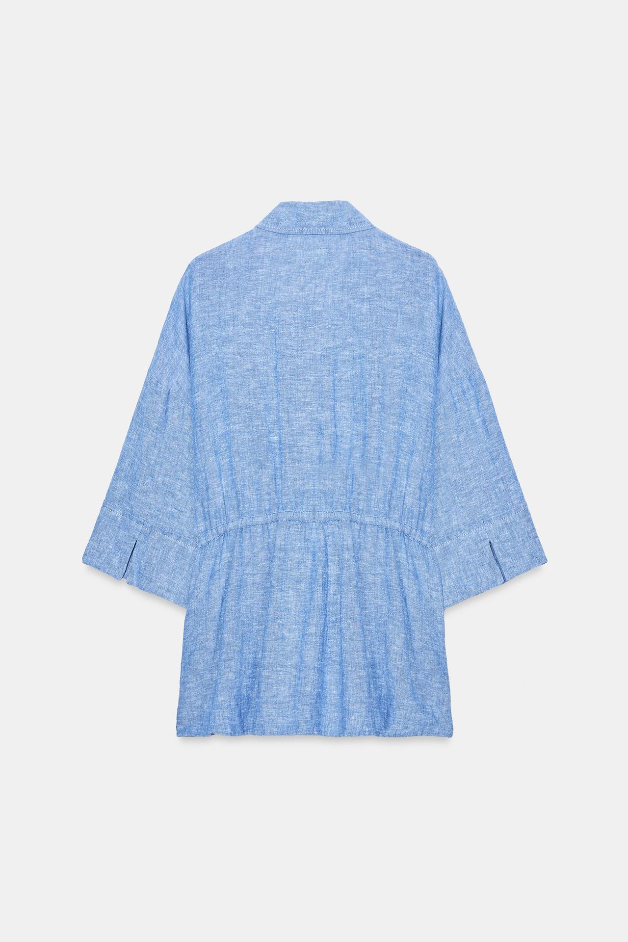 ZARA РУБАШКА САФАРИ ИЗ ЛЬНА, ГОЛУБОЙ