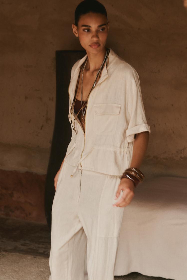 ZARA РУБАШКА САФАРИ ИЗ ЛЬНА, ПЕСОЧНЫЙ