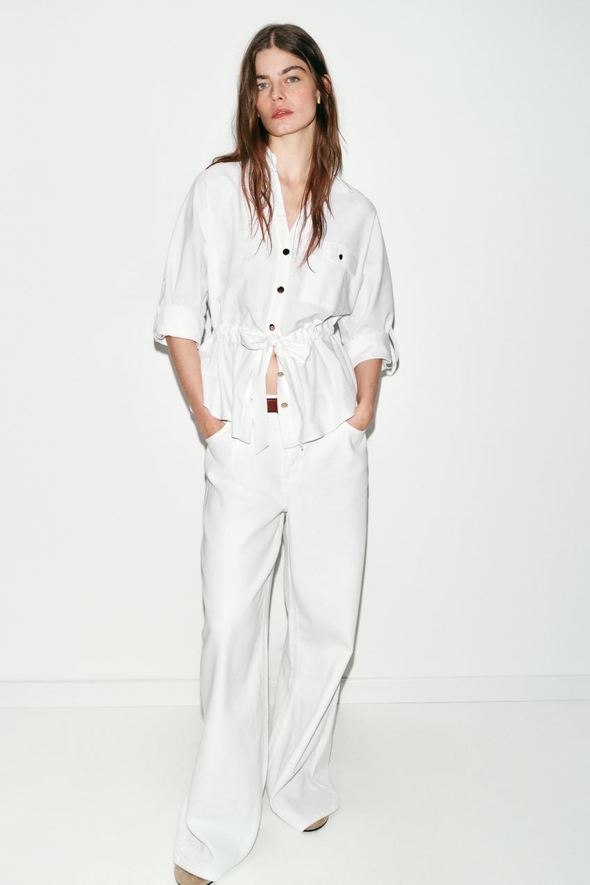 ZARA РУБАШКА САФАРИ ИЗ ПОПЛИНА, БЕЛЫЙ