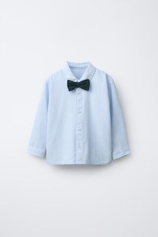 ZARA РУБАШКА СО СЪЕМНОЙ БАБОЧКОЙ, СИНИЙ