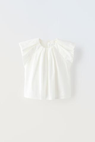 ZARA РУБАШКА СО СКЛАДКАМИ, БЕЛЫЙ