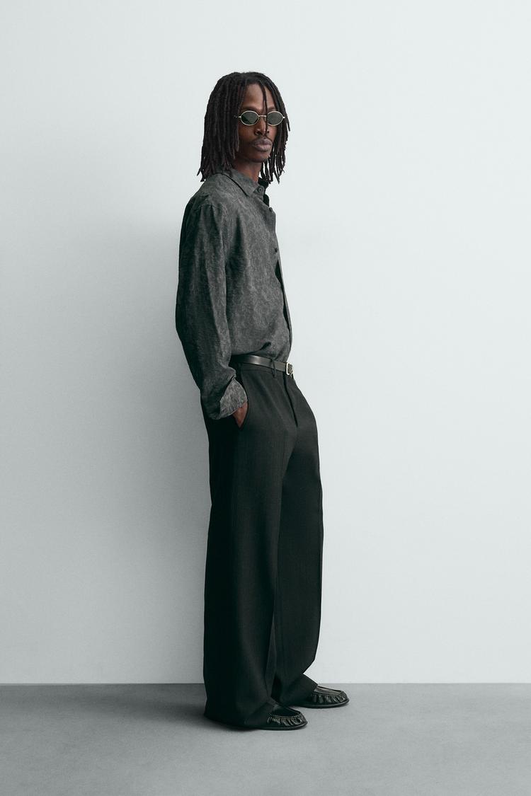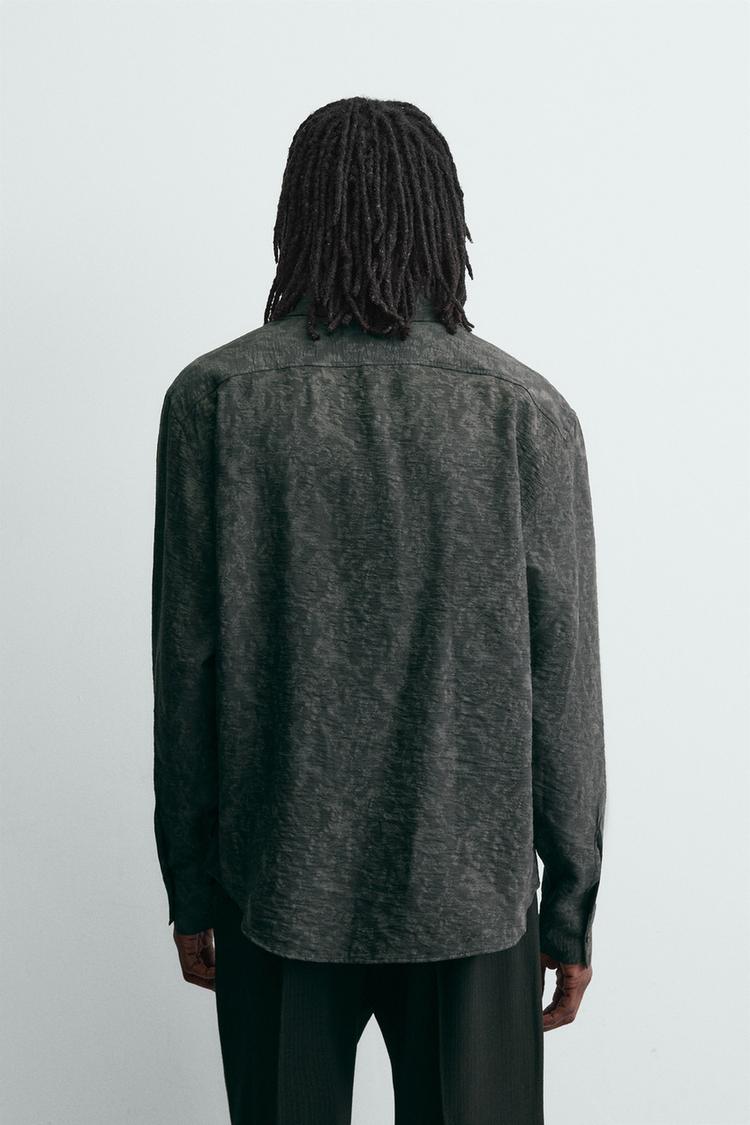 ZARA РУБАШКА СТРУЯЩЕГОСЯ ПОКРОЯ JACQUARD С ЦВЕТОЧНЫМ УЗОРОМ, АНТРАЦИТОВО-СЕРЫЙ