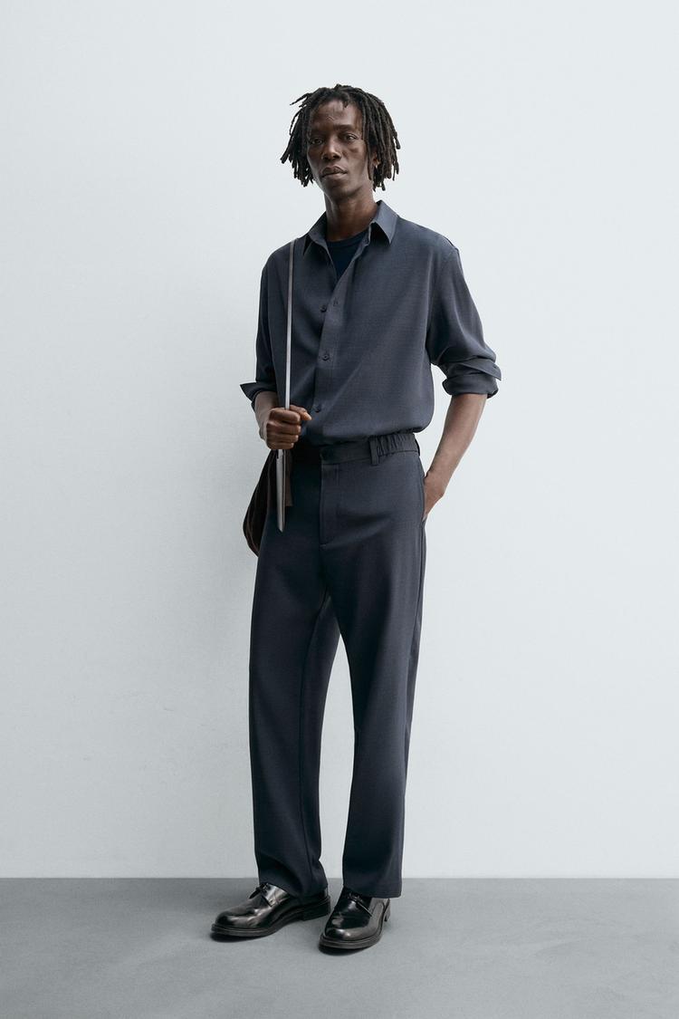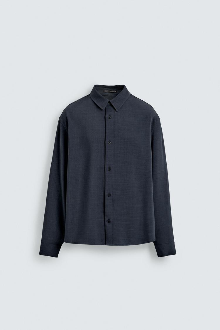 ZARА РУБАШКА СТРУЯЩЕГОСЯ ПОКРОЯ RELAXED FIT, МОРСКОЙ СИНИЙ