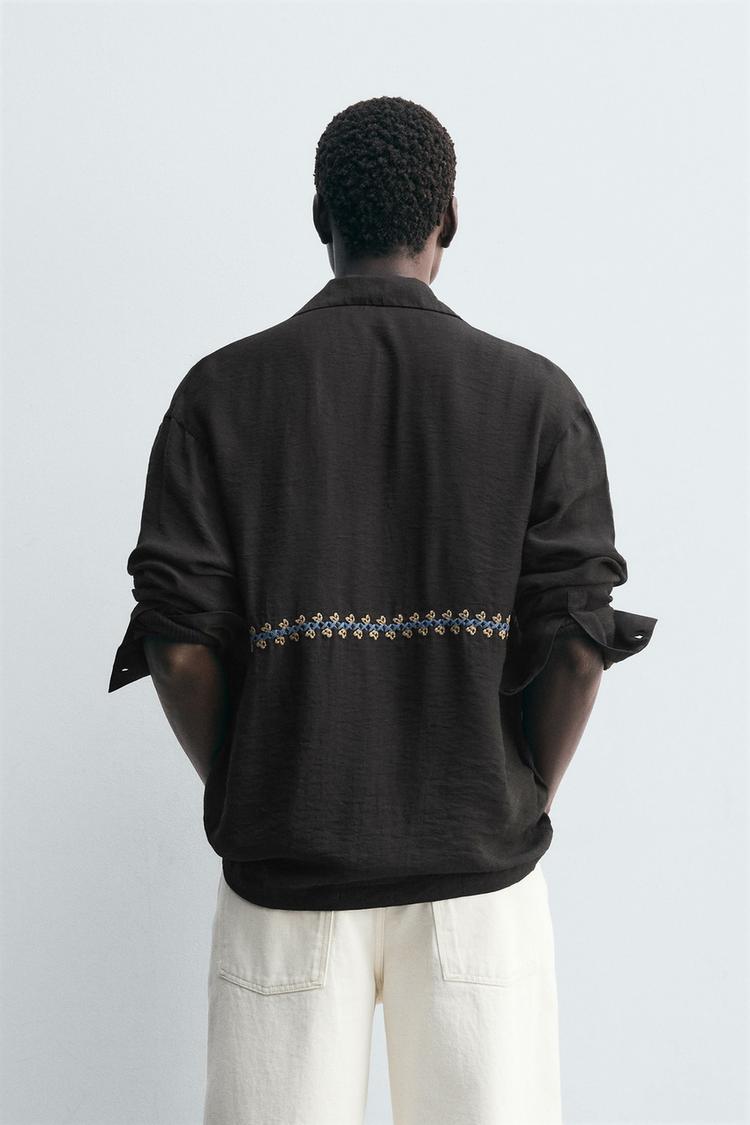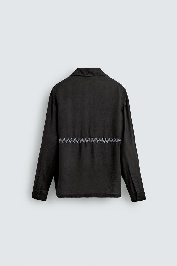 ZARA РУБАШКА СТРУЯЩЕГОСЯ ПОКРОЯ С ГЕОМЕТРИЧЕСКОЙ ВЫШИВКОЙ, АНТРАЦИТОВО-СЕРЫЙ