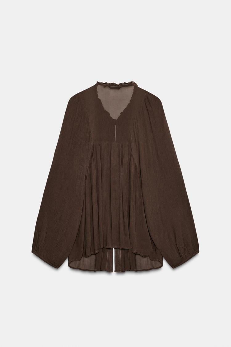 ZARA РУБАШКА СТРУЯЩЕГОСЯ ПОКРОЯ С ВОЛАНАМИ, КОРИЧНЕВЫЙ