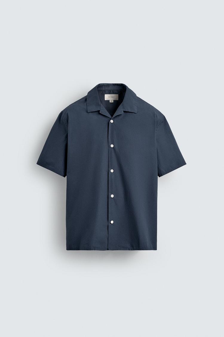 ZARA РУБАШКА СВОБОДНОГО КРОЯ ИЗ ПОПЛИНА, СИНИЙ