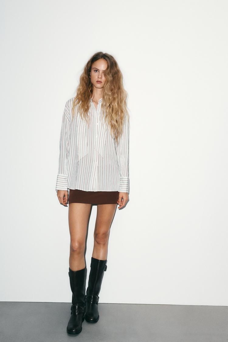 ZARA РУБАШКА СВОБОДНОГО КРОЯ В ПОЛОСКУ С ШАРФОМ, РАЗНОЦВЕТНЫЙ