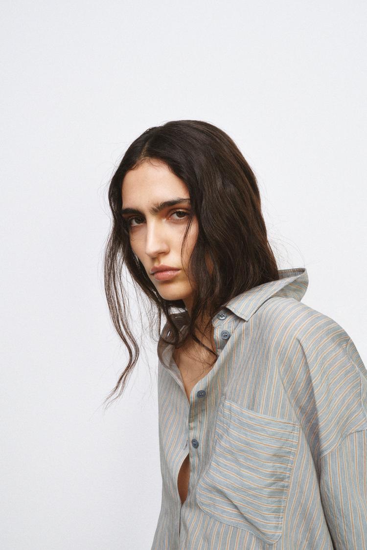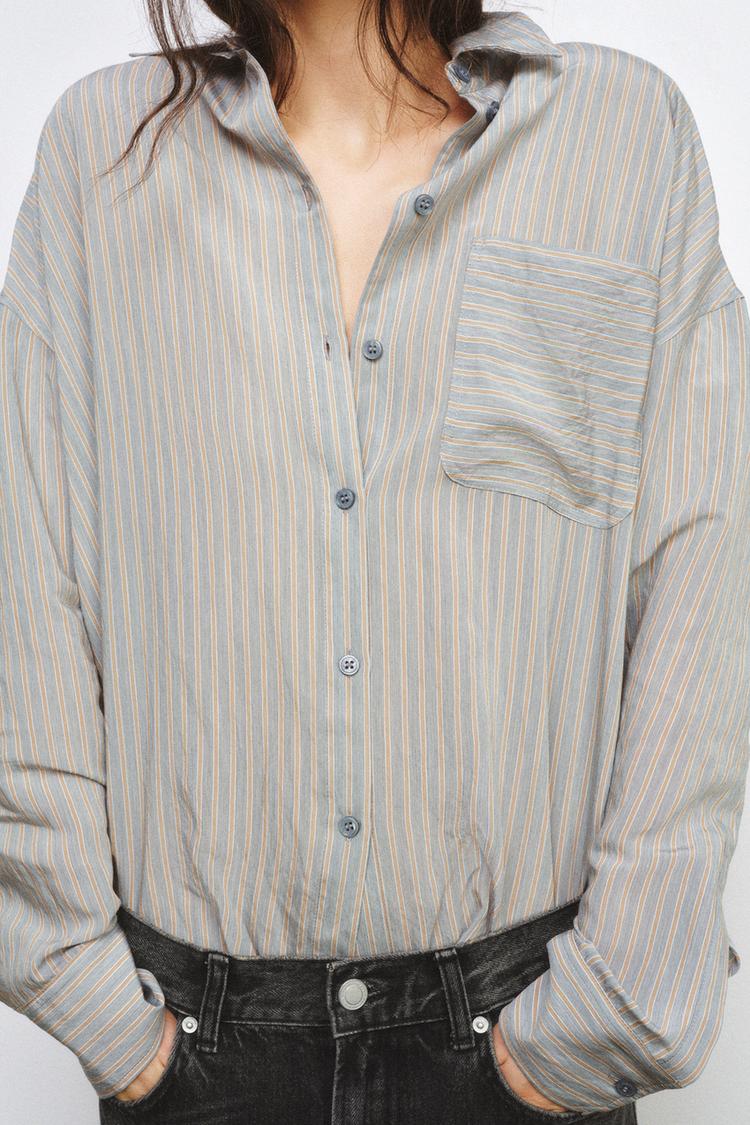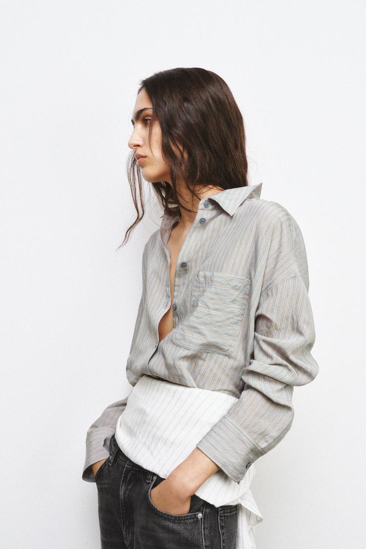 ZARA РУБАШКА СВОБОДНОГО КРОЯ В ПОЛОСКУ — ZW COLLECTION, РАЗНОЦВЕТНЫЙ