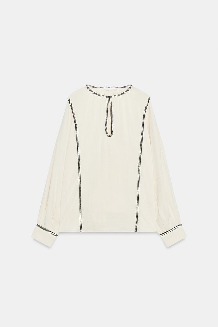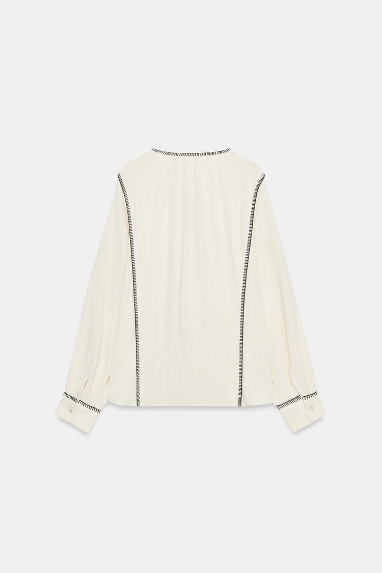 ZARA РУБАШКА В ДЕРЕВЕНСКОМ СТИЛЕ С ДЕКОРАТИВНОЙ СТРОЧКОЙ — ZW COLLECTION, ЭКРЮ