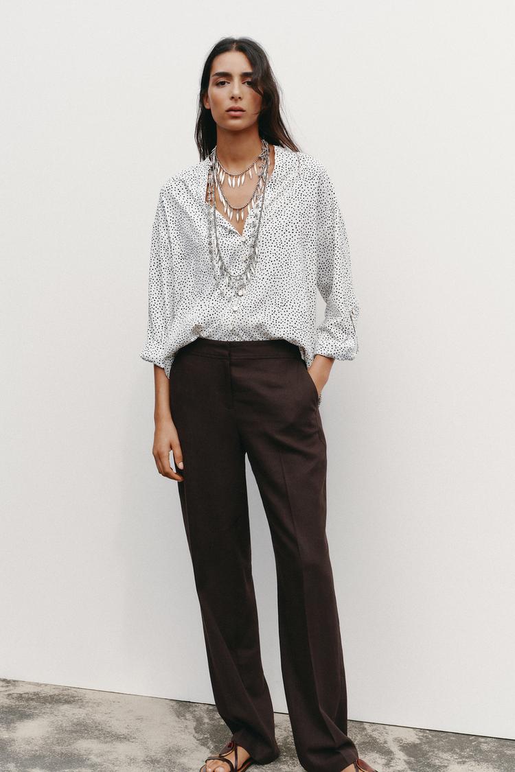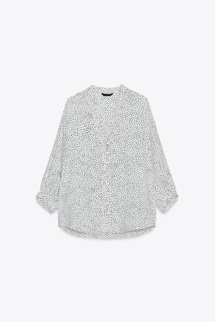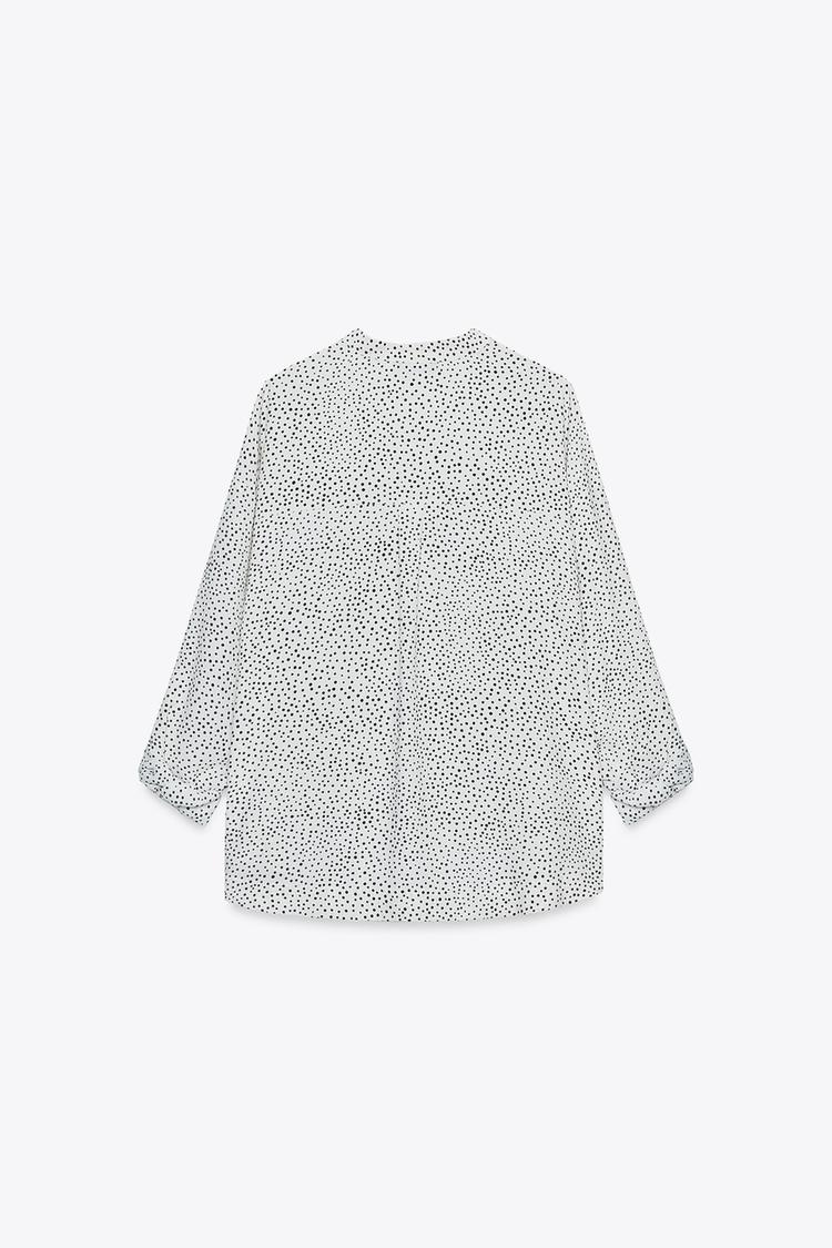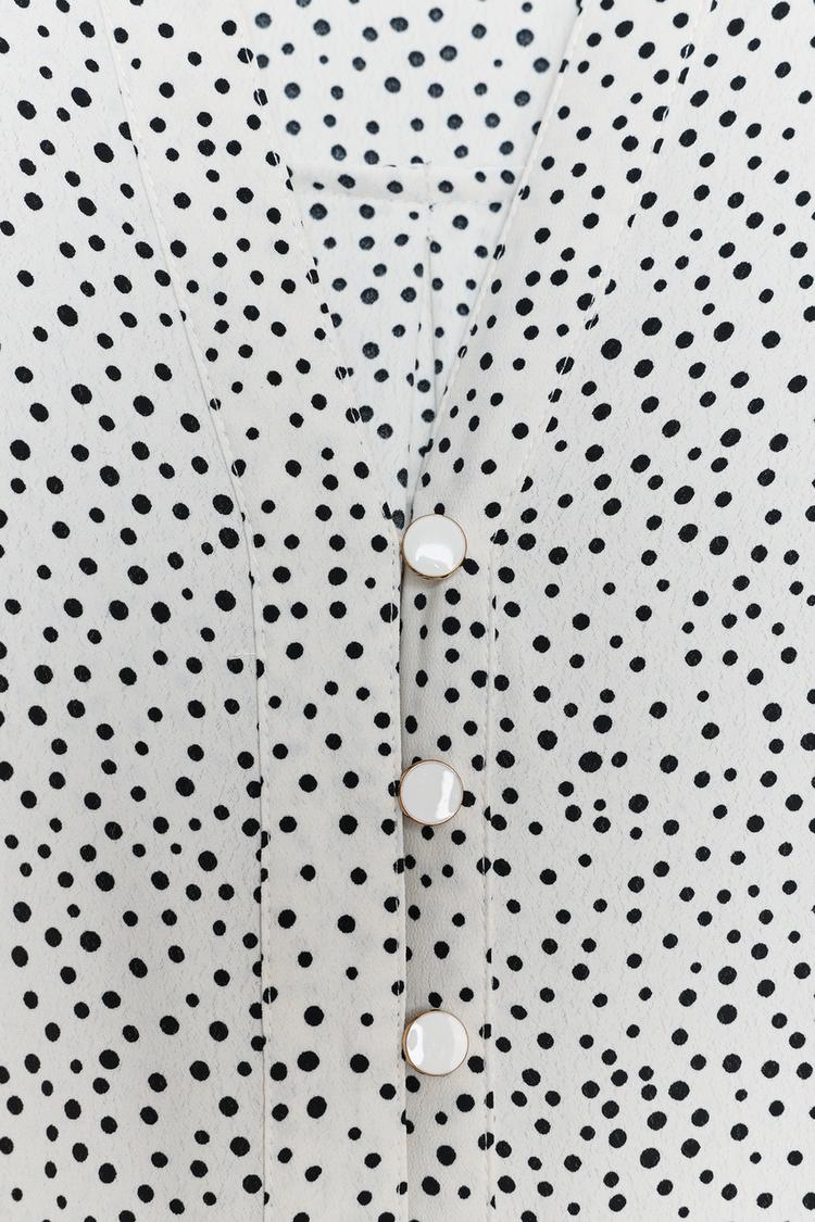 ZARA РУБАШКА В ГОРОШЕК С РУКАВАМИ С ПАТАМИ, ЭКРЮ/ЧЕРНЫЙ