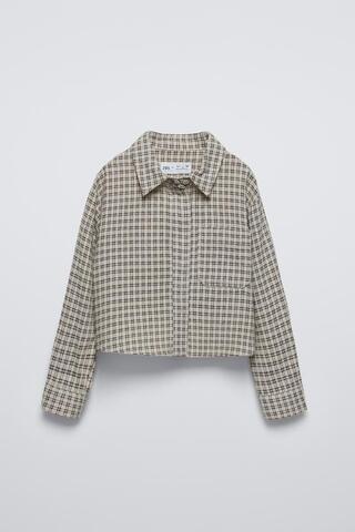 ZARA РУБАШКА В КЛЕТКУ, ЭКРЮ/ЧЕРНЫЙ