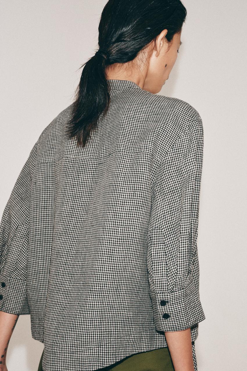 ZARA РУБАШКА В КЛЕТКУ ИЗ ЛЬНА — ZW COLLECTION, ЭКРЮ/ЧЕРНЫЙ