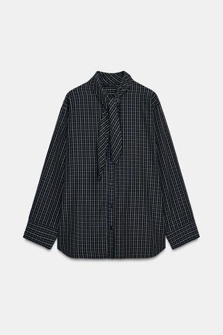 ZARA РУБАШКА В КЛЕТКУ С ХЛОПКОВЫМ ПЛАТКОМ, ЧЕРНЫЙ/ЭКРЮ