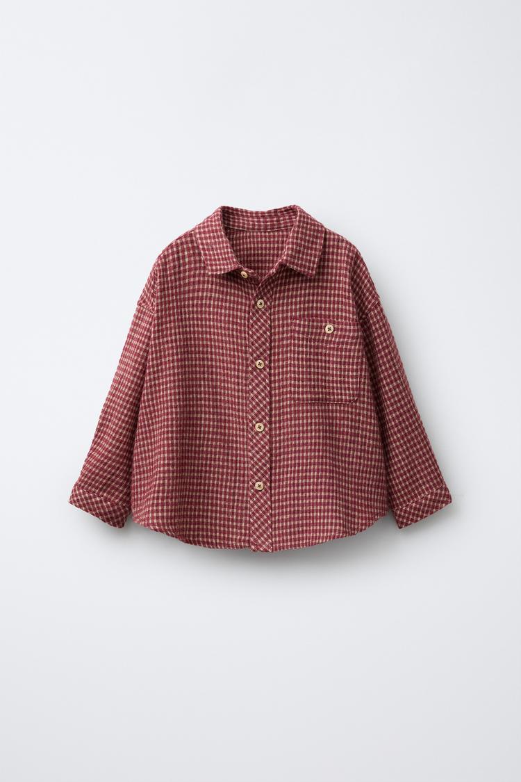 ZARA РУБАШКА В КЛЕТКУ С КАРМАНОМ, ГРАНАТОВЫЙ