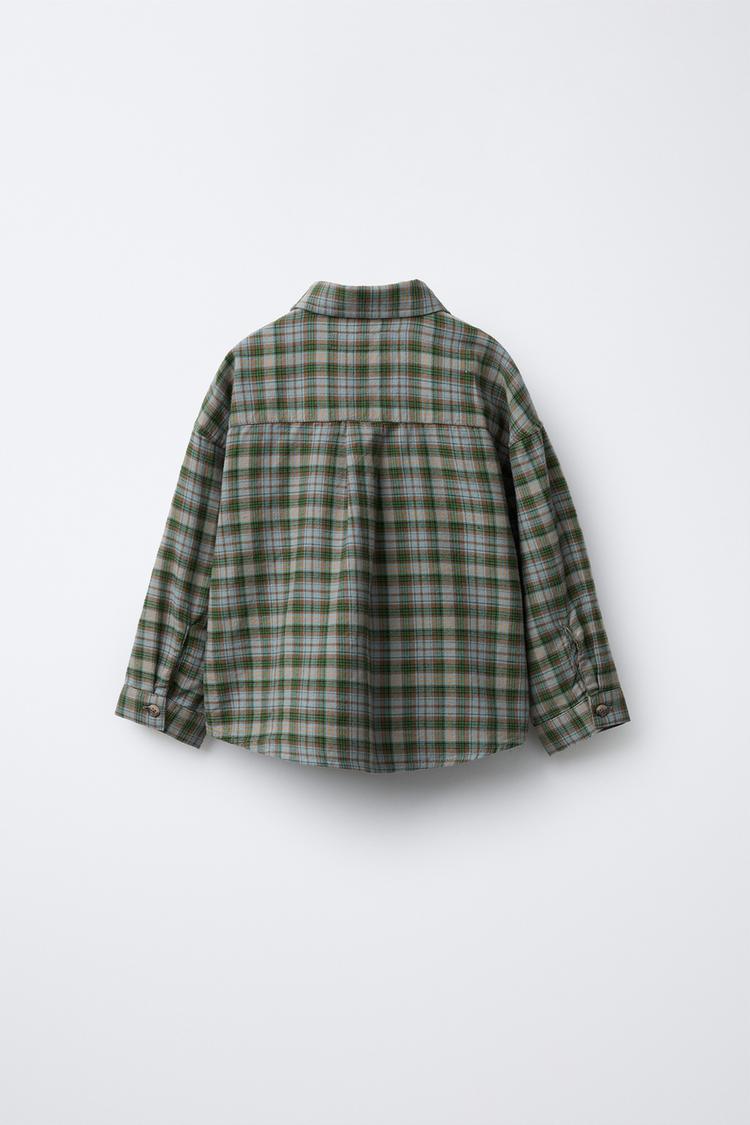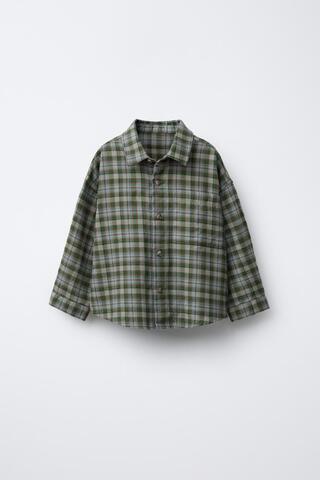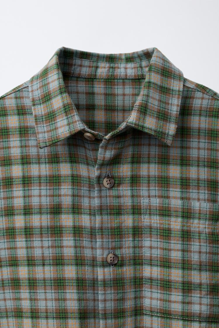 ZARA РУБАШКА В КЛЕТКУ С КАРМАНОМ, ЗЕЛЕНЫЙ