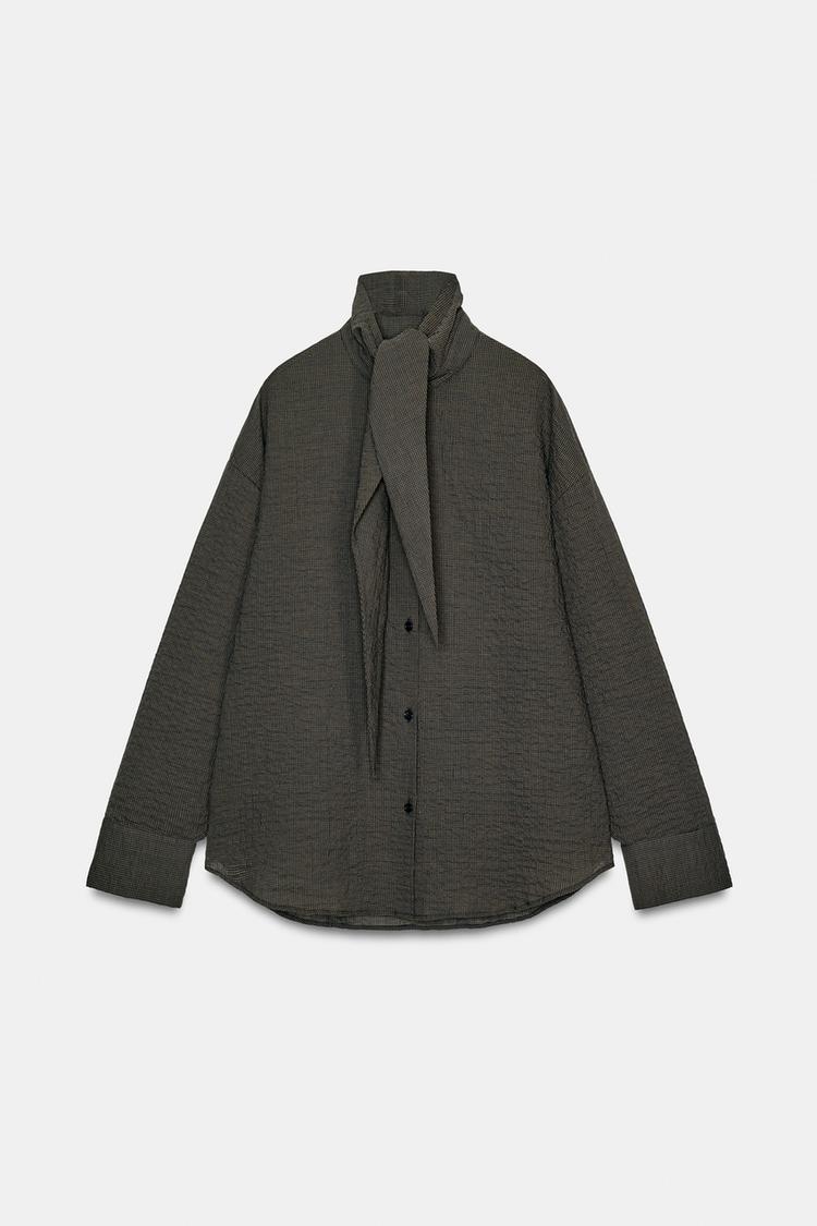 ZARA РУБАШКА В КЛЕТКУ С ПЛАТКОМ — ZW COLLECTION, ХАКИ