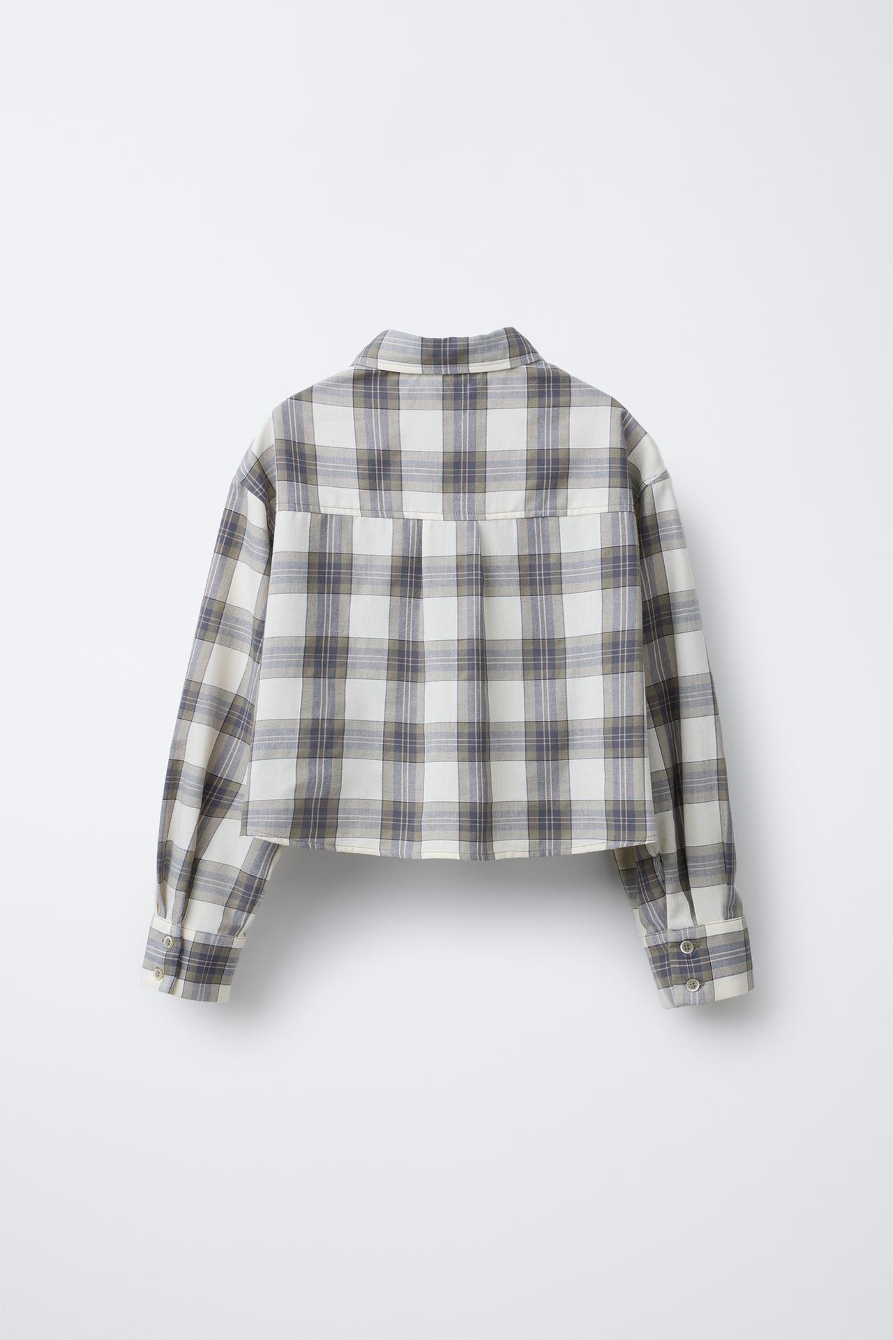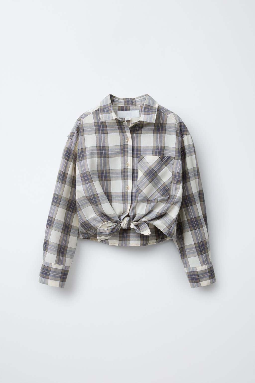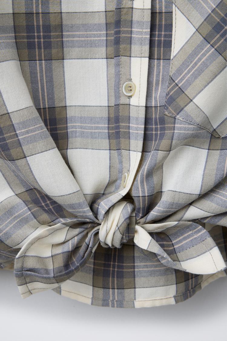 ZARA РУБАШКА В КЛЕТКУ С УЗЛОМ, ХАКИ
