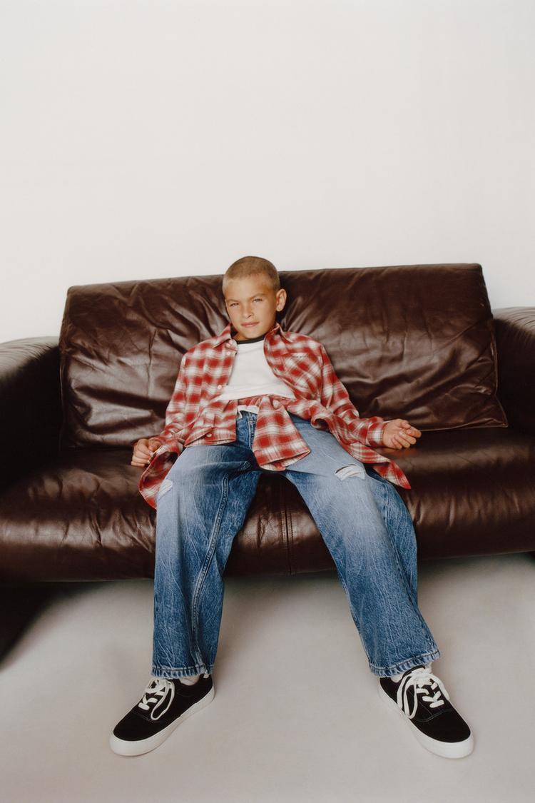 ZARA РУБАШКА В КЛЕТКУ С ВЫШИТОЙ НАДПИСЬЮ, КРАСНЫЙ