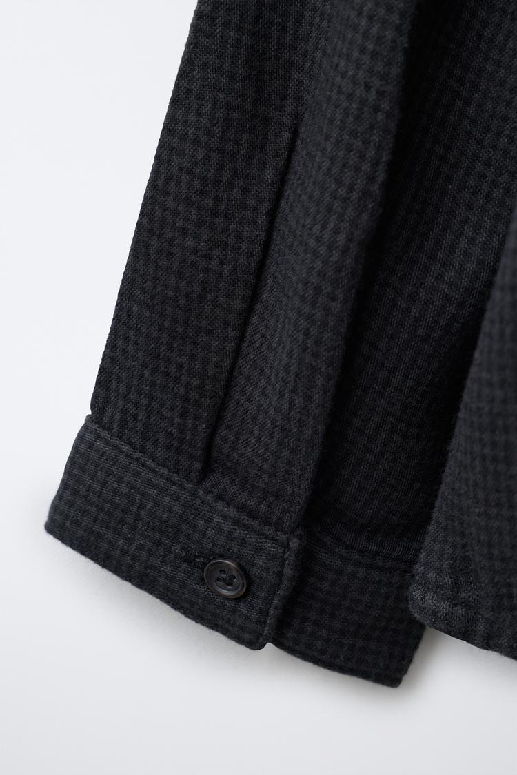 ZARA РУБАШКА В КЛЕТКУ С ВЫШИВКОЙ И КАРМАНОМ, СЕРЫЙ