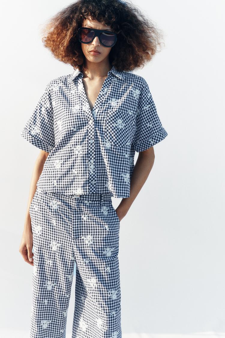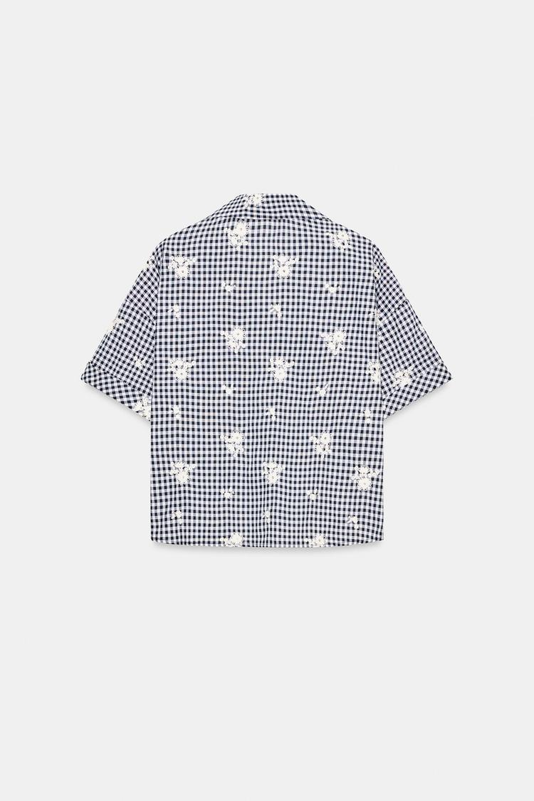 ZARA РУБАШКА В КЛЕТКУ С ВЫШИВКОЙ, ТЕМНО-СИНИЙ/БЕЛЫЙ