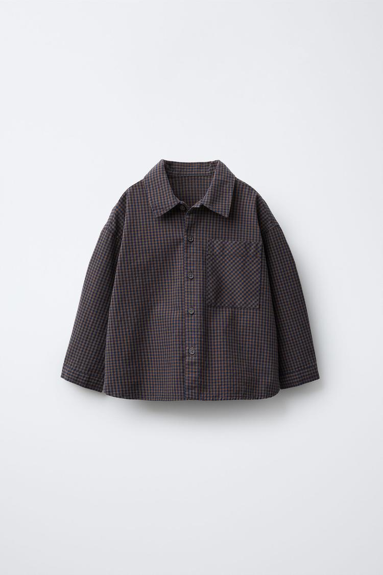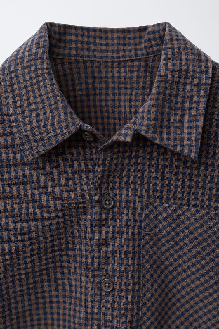 ZARA РУБАШКА В КЛЕТКУ ВИШИ, КОРИЧНЕВО-СИНИЙ