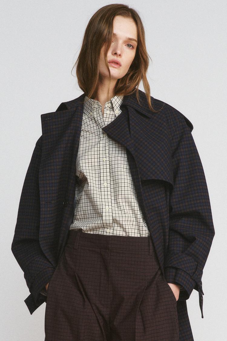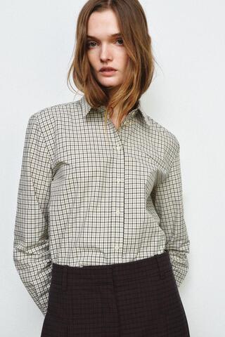 ZARA РУБАШКА В КЛЕТКУ ZW COLLECTION, ЭКРЮ/СИНИЙ