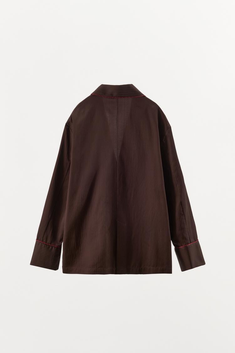ZARA РУБАШКА В ПИЖАМНОМ СТИЛЕ В ПОЛОСКУ С КОНТРАСТНЫМИ ДЕТАЛЯМИ, КОРИЧНЕВЫЙ