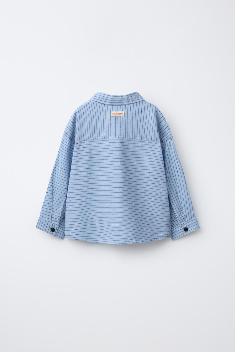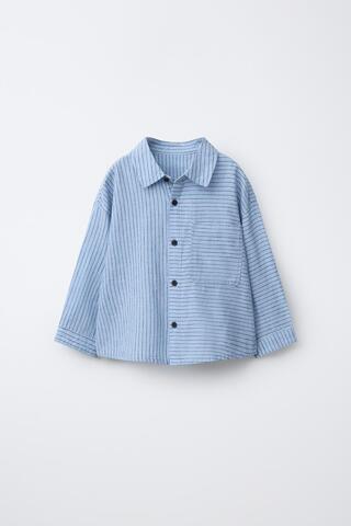 ZARA РУБАШКА В ПОЛОСКУ ИЗ ХЛОПКА И ЛЬНА, СИНИЙ