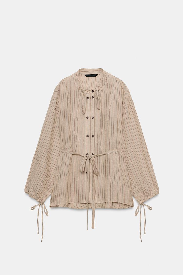 ZARA РУБАШКА В ПОЛОСКУ ИЗ ЛЬНА — ZW COLLECTION, ПОЛОСКИ