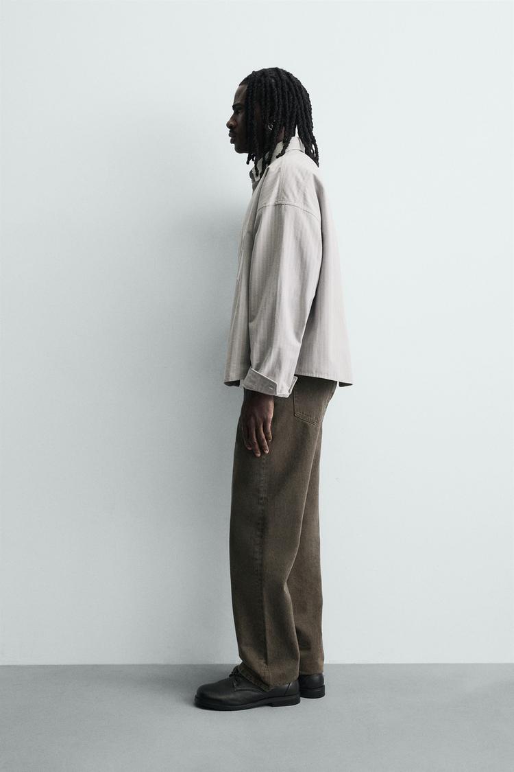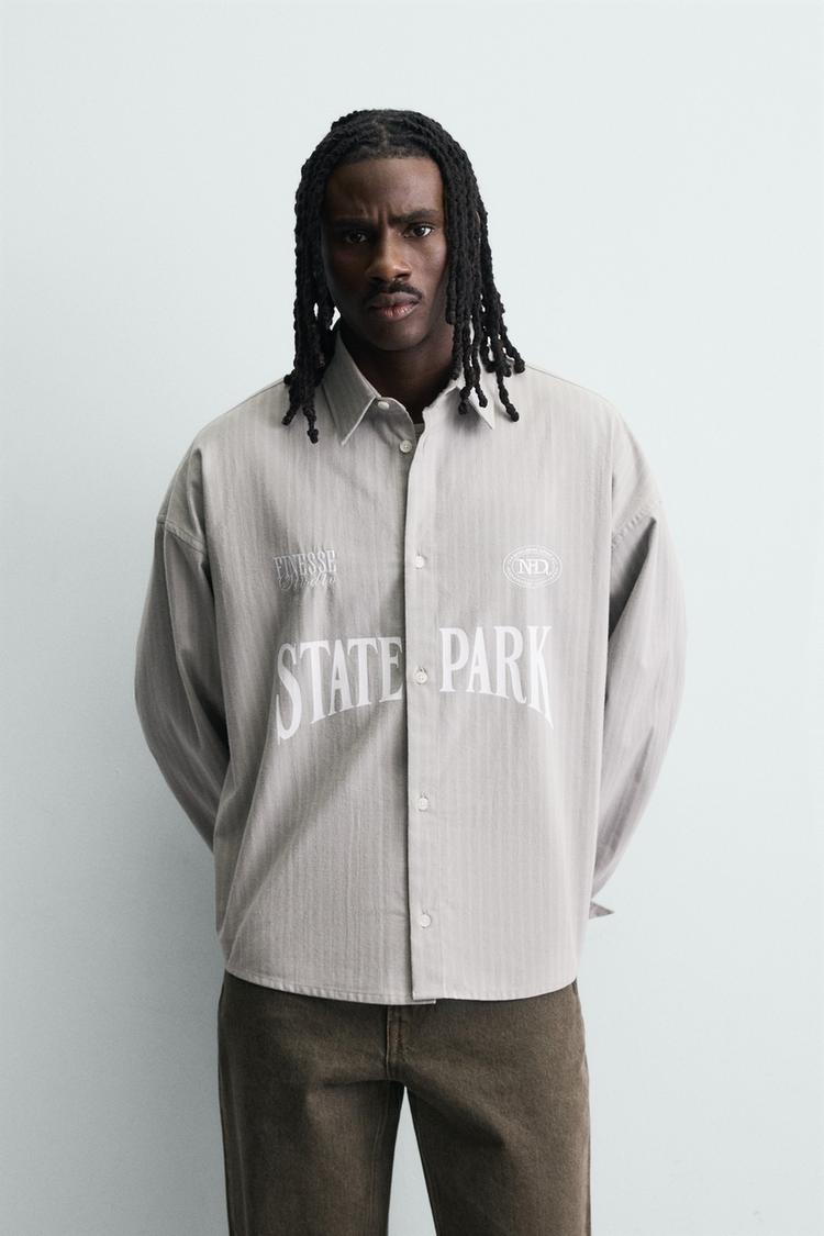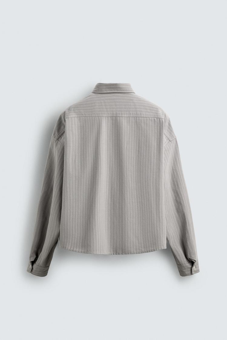 ZARA РУБАШКА В ПОЛОСКУ С КОНТРАСТНОЙ ВЫШИВКОЙ, СЕРЫЙ
