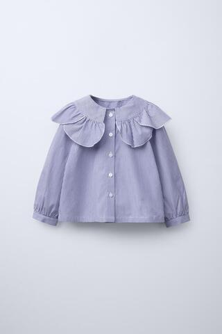 ZARA РУБАШКА В ПОЛОСКУ С ОТЛОЖНЫМ ВОРОТНИКОМ, СИНИЙ