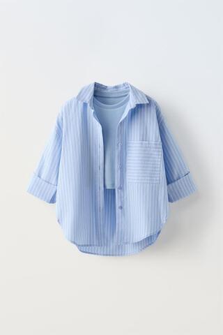 ZARA РУБАШКА В ПОЛОСКУ С ТОПОМ В РУБЧИК, ГОЛУБОЙ