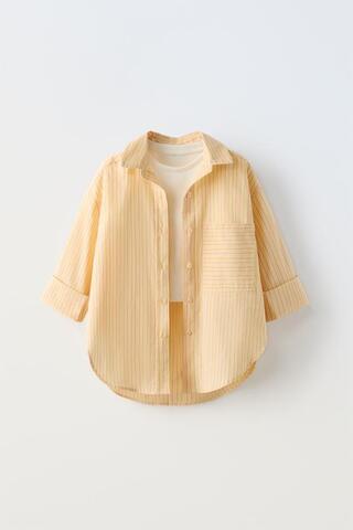 ZARA РУБАШКА В ПОЛОСКУ С ТОПОМ В РУБЧИК, СВЕТЛО-ЖЕЛТЫЙ