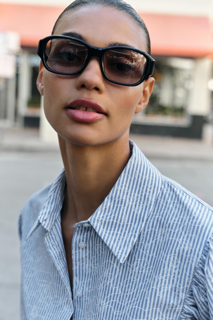 ZARA РУБАШКА В ПОЛОСКУ С ЦВЕТОЧНЫМ ПРИНТОМ, СИНИЙ/БЕЛЫЙ