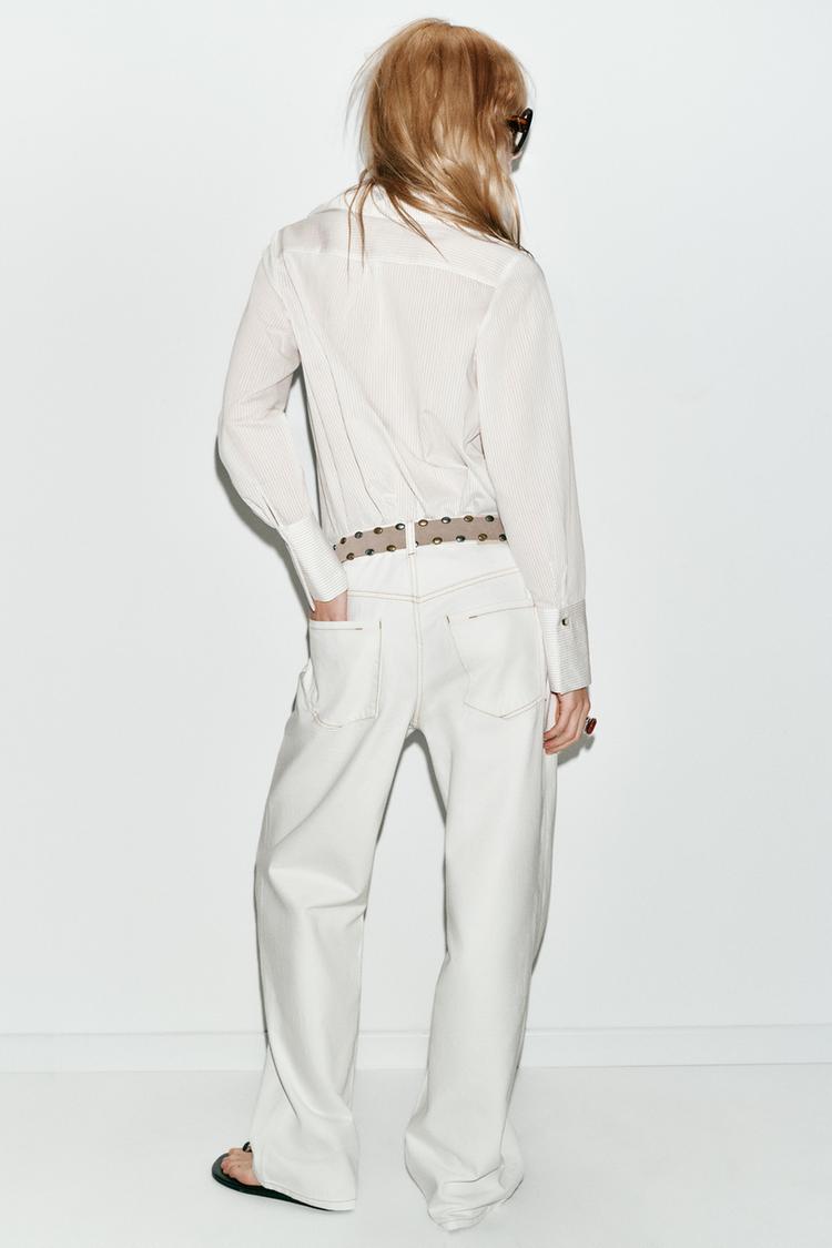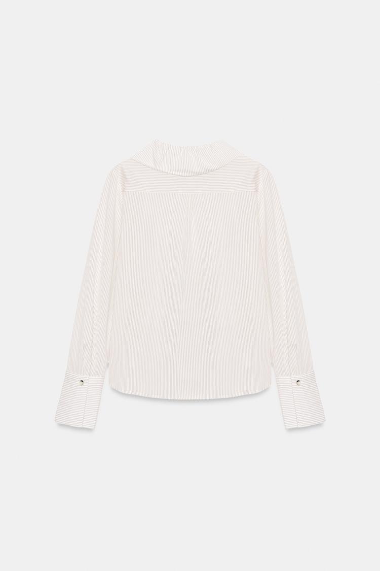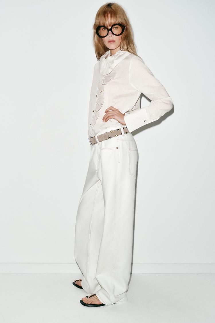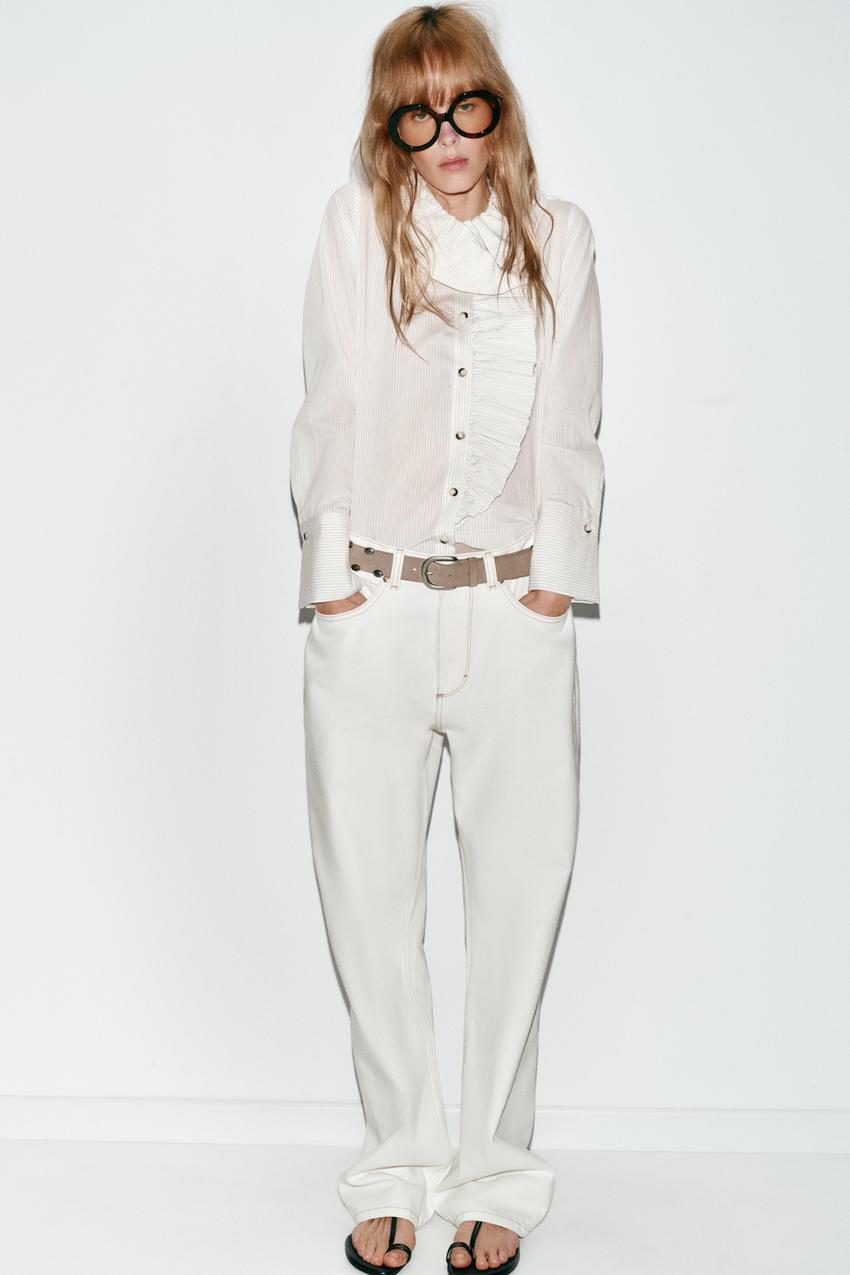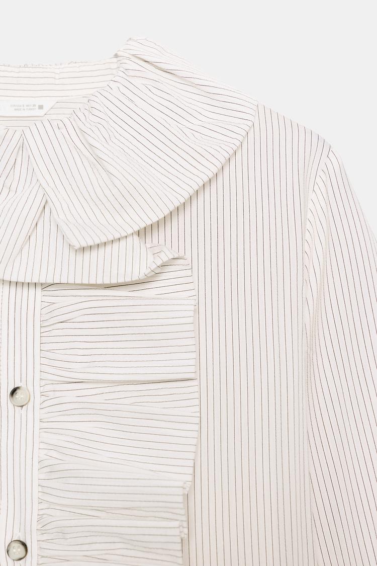 ZARA РУБАШКА В ПОЛОСКУ С ВОЛАНАМИ, БЕЛЫЙ/ЧЕРНЫЙ
