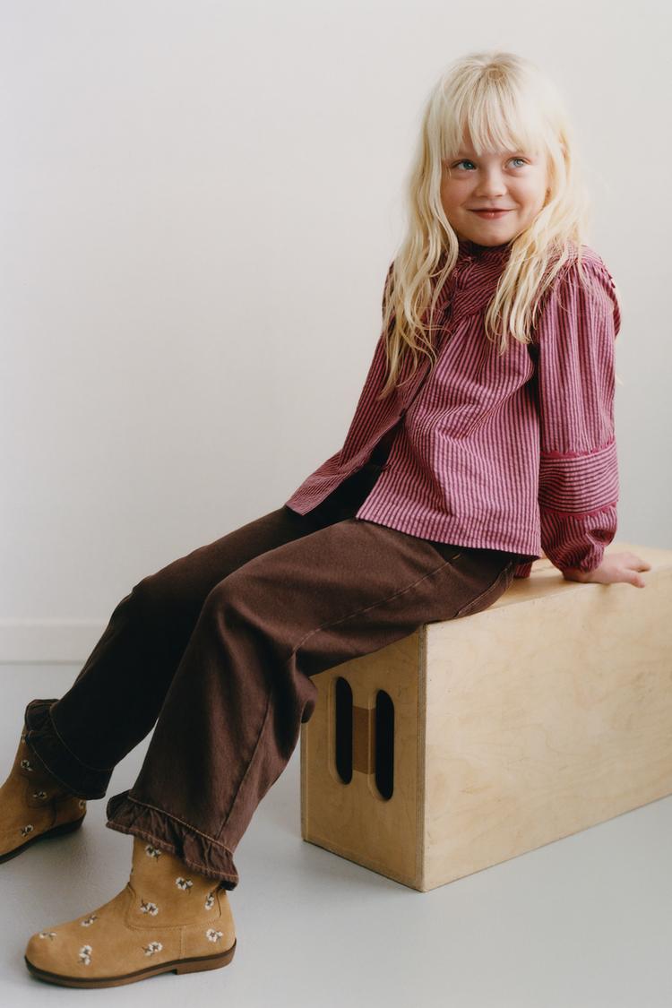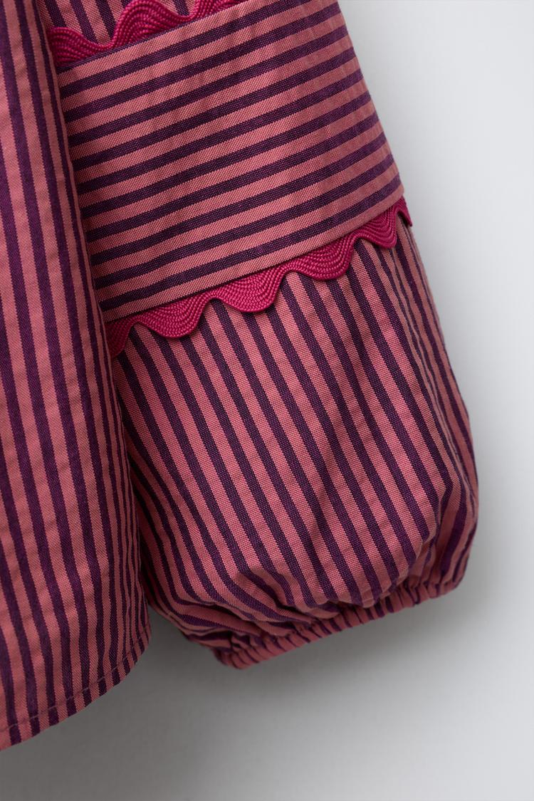 ZARA РУБАШКА В ПОЛОСКУ С ВОЛНИСТЫМ КРАЕМ, ТЕМНО-РОЗОВЫЙ