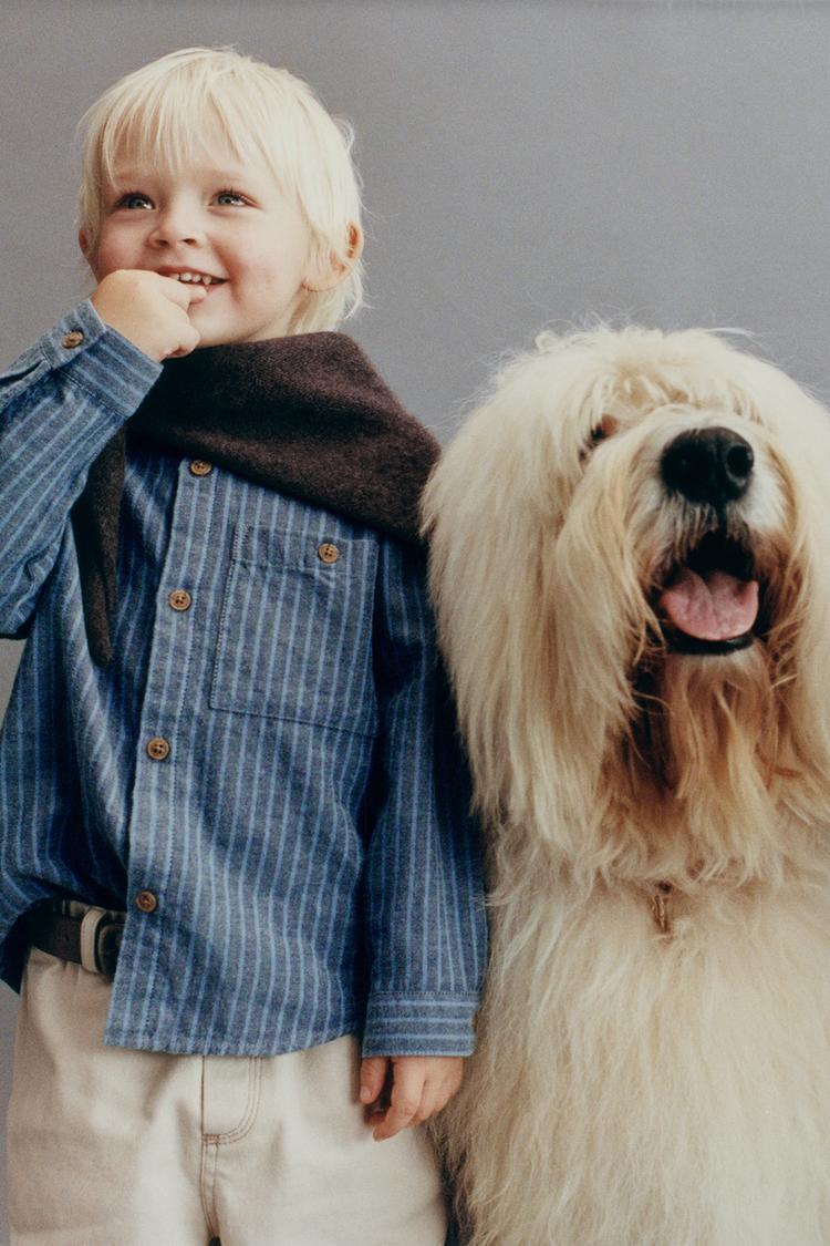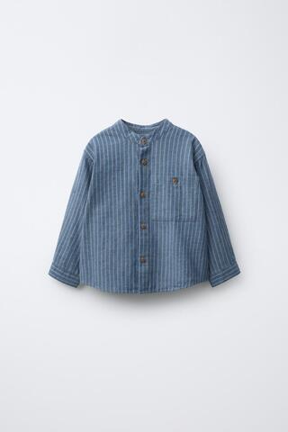 ZARA РУБАШКА В ПОЛОСКУ С ВОРОТНИКОМ-СТОЙКОЙ, СИНИЙ